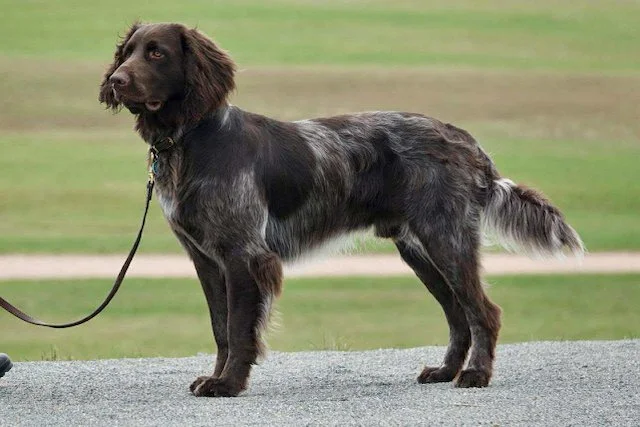 Handsome male with a fitting male head and correctly set ears. Very good bone substance. Very good chest width and depth, spacious, fluid movement, lightly toe-tight in the front end. Ideal, very dense and harsh schimmel hair in fitting length and structure with appropriate feathering, fringing, and tail fan.